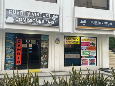 Puedes comprarla en la tienda frente al edificio. Recomendamos Claro o Tigo como proveedores de servicio. En la imagen se muestra la fachada de la tienda.